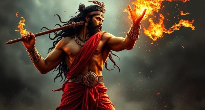 Then he take the oath by putting vedavati’s finger bones as a pendant after the death rituals. Thus he dont like the land and people who killed vedavati, So he unleashes all his wrath.