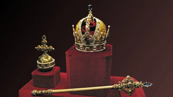 ಬ್ರಿಟಿಷ್ ಕಿರೀಟ ರತ್ನಗಳ ಶಿಲುಬೆಯೊಂದಿಗೆ ಸಾರ್ವಭೌಮನ ರಾಜದಂಡ ಮತ್ತು ಕುಲ್ಲಿನಾನ್ I ವಜ್ರ
